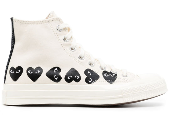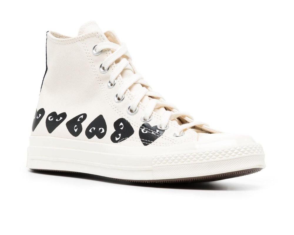 ה-צ'אק 70 מולטי הארט מציגה דפוס לבבות צבעוני ומגוון על גבי הבד הלבן הקלאסי, שמביא את סגנון האהבה והחום של סי די ג'י. הלבבות הצבעוניים נותנים לנעל אופי אישי ומיוחד, לבלוט בכל מקום.