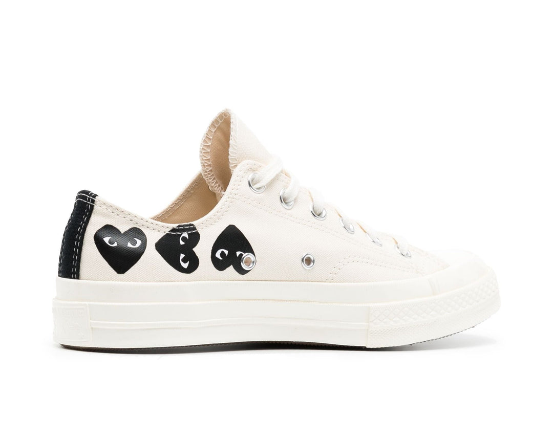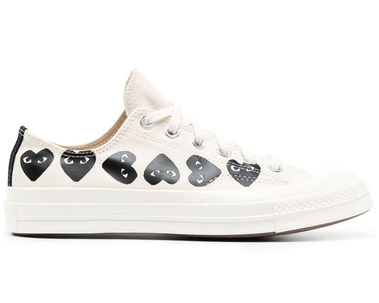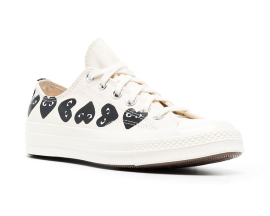 ה-צ'אק 70 מולטי הארט מציגה דפוס לבבות צבעוני ומגוון על גבי הבד הלבן הקלאסי, שמביא את סגנון האהבה והחום של סי די ג'י. הלבבות הצבעוניים נותנים לנעל אופי אישי ומיוחד, לבלוט בכל מקום.