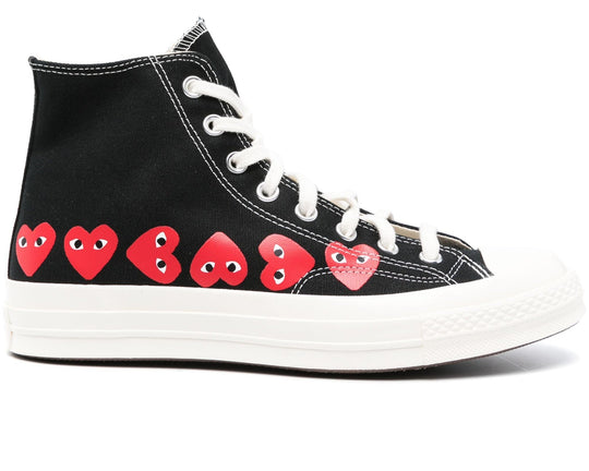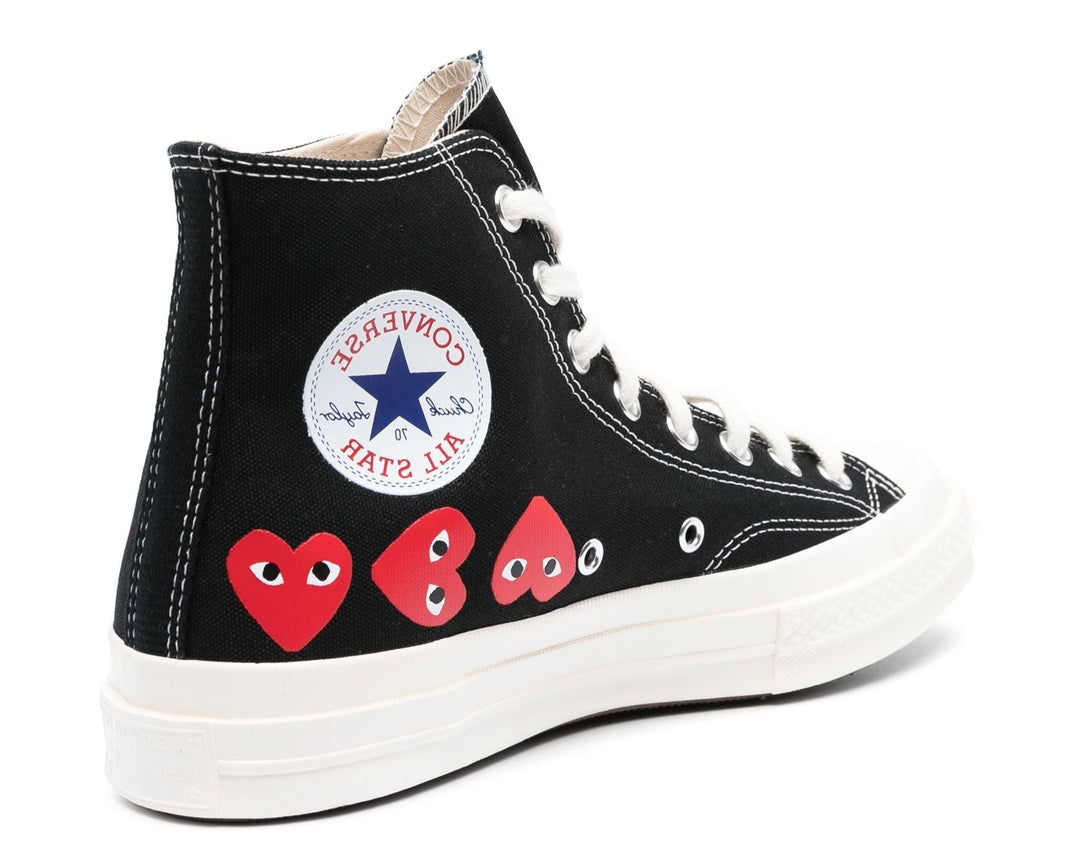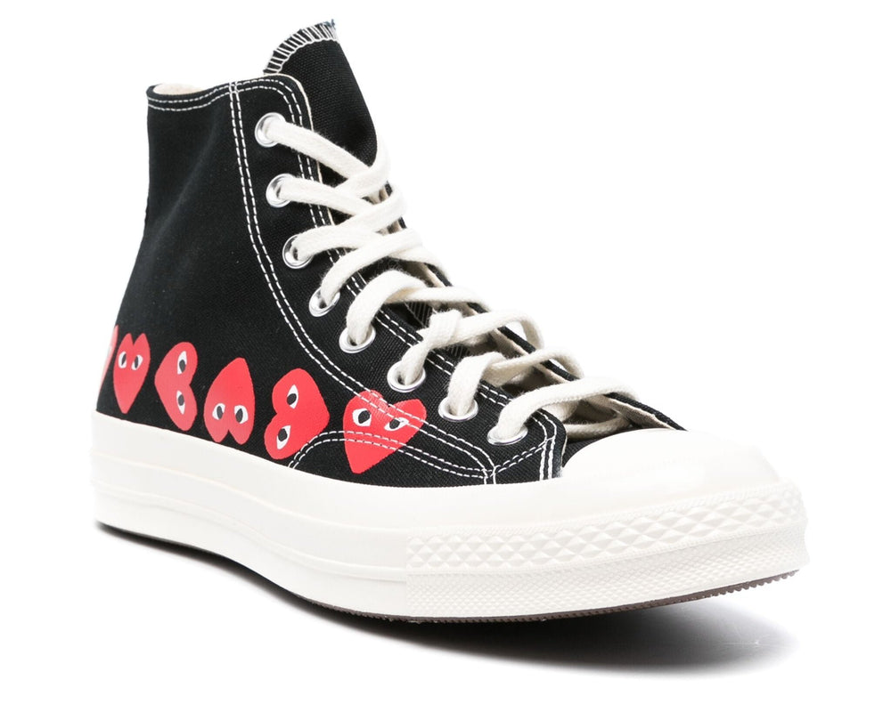 ה-צ'אק 70 מולטי הארט מציגה דפוס לבבות צבעוני ומגוון על גבי הבד הלבן הקלאסי, שמביא את סגנון האהבה והחום של סי די ג'י. הלבבות הצבעוניים נותנים לנעל אופי אישי ומיוחד, לבלוט בכל מקום.